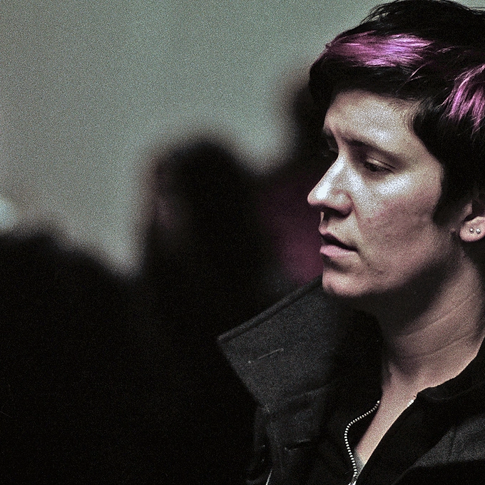 Woman with magenta hair