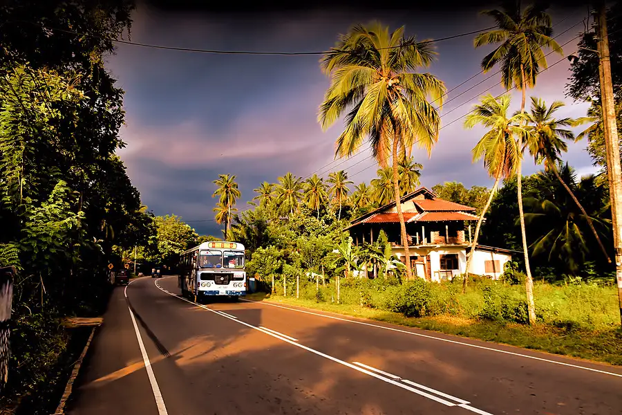 Tangalle Road - Morakatiyara Juncion - Sri Lanka. It's evening in low sunshine.
