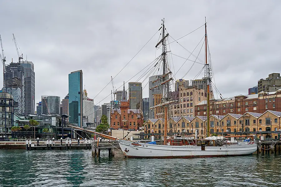 The Søren Larsen docked at Campbell's Cove, Sydney harbour.
