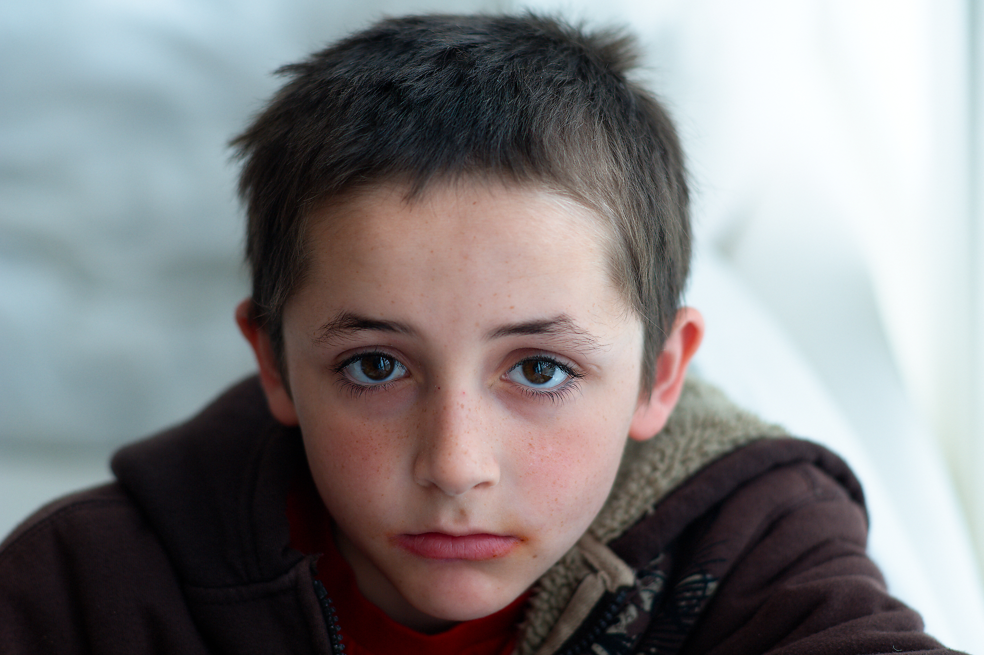 This lad was not as friendly as most of the people I photograph in down town Portland. He was asking for money and was a bit frustrated to see me with a camera. I did manage to get one or two shots in before moving on. On the other hand, the dogs did not seem to care and seemed quite happy and relaxed.