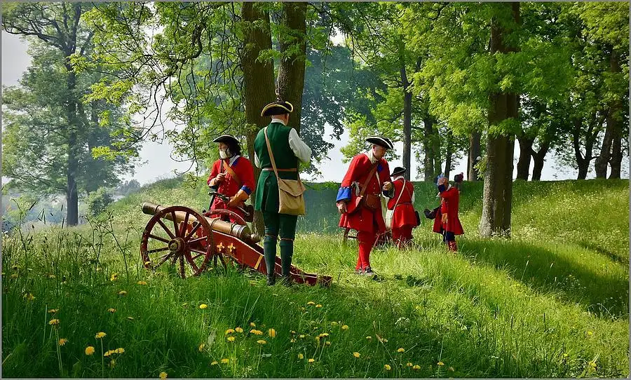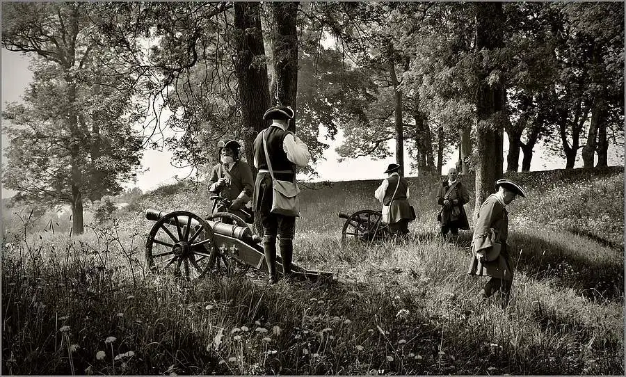 Battle Reenactment of Norwegian 1700-century soldiers defending their town against aggressive King Karl XII of Sweden.