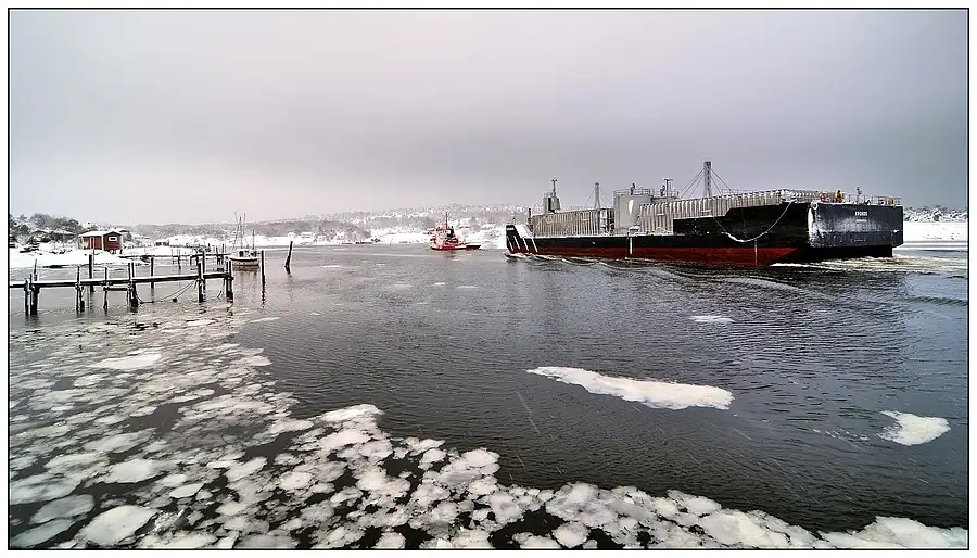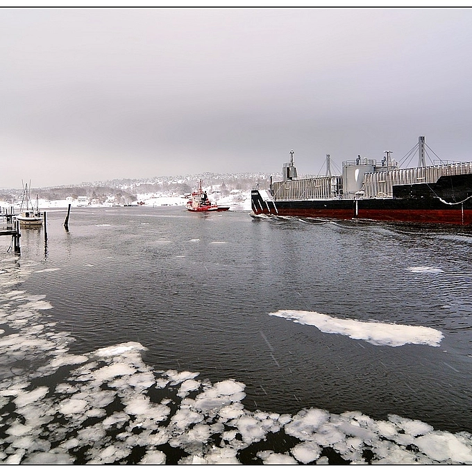 Barge-tow in Sleet & Snow