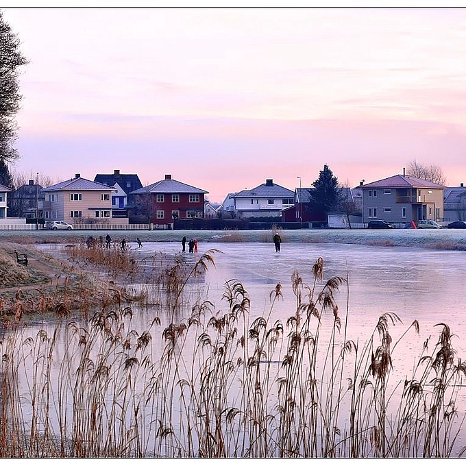 Ice Skaters on frozen Pond