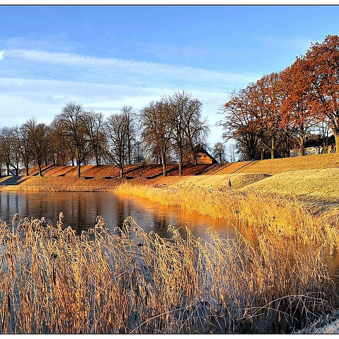 Draw Bridge across frozen Moat