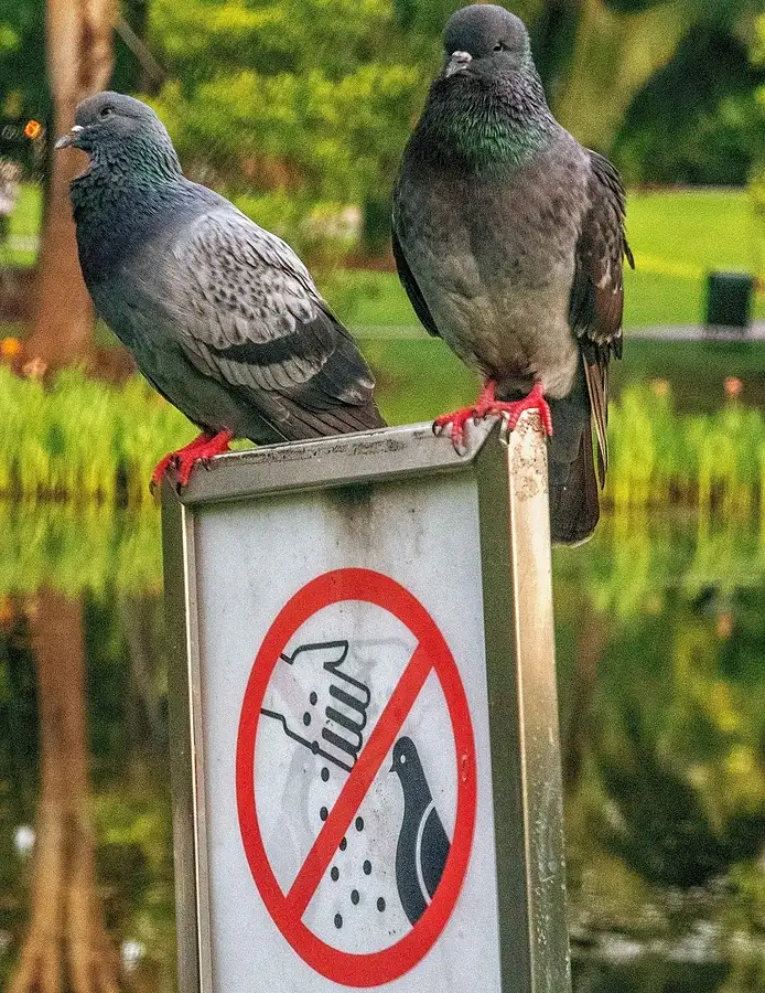 Glum-faced pigeons.