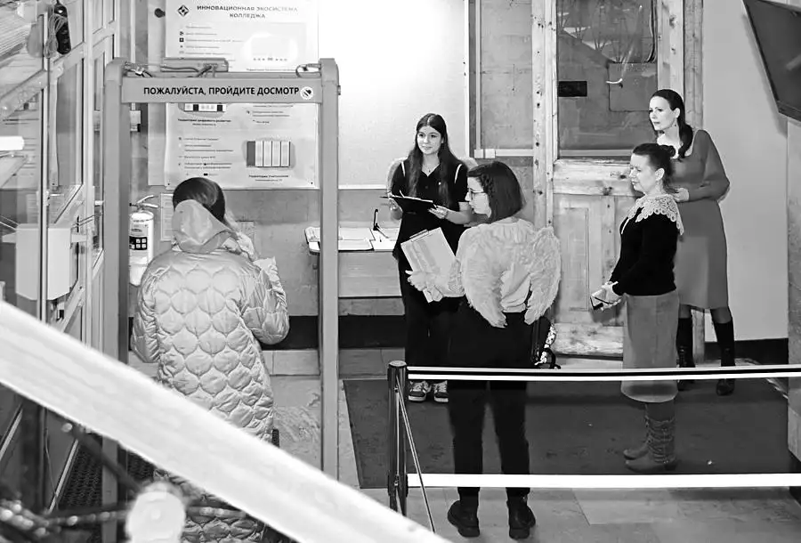 Inscription on the metal detector: 'Prepare to be frisked'
