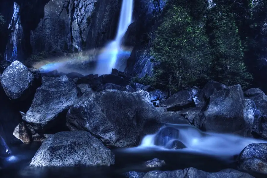 "Moonbow" at the Base of Yosemite Falls.
