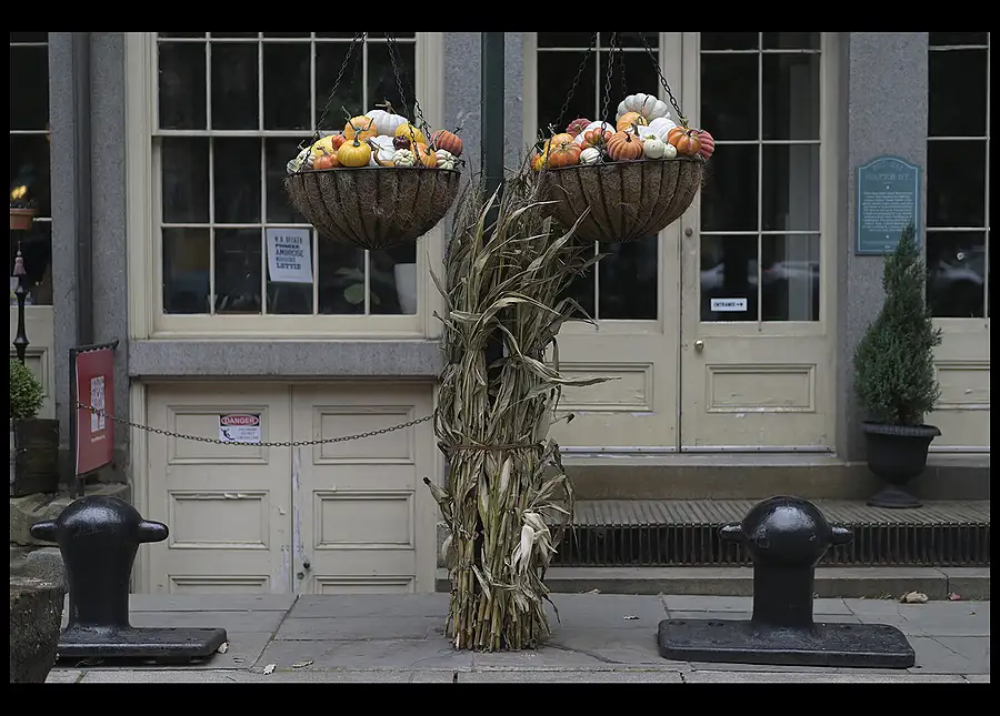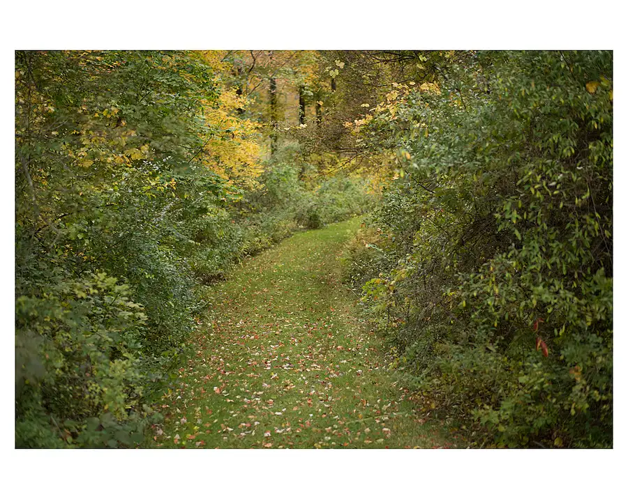 As part of my rehab. from my right hip replacement at the end of August, I've been walking two miles a day One day, while walking, I noticed a fossilized impression of a maple leaf in the concrete sidewalk, and when the leaves turned, drove back to the spot with my gear, arranged this composition and grabbed this shot