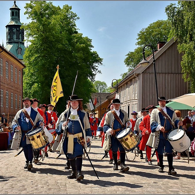 Battle Reenactment of Norwegian 1700-century soldiers defending their town against aggressive King Karl XII of Sweden.