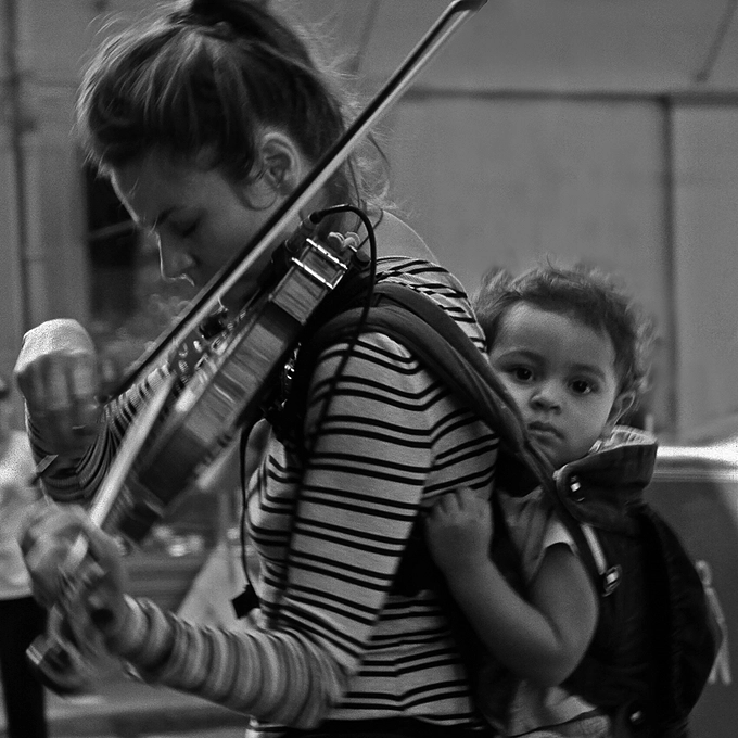 Street musician and her child-New Orleans