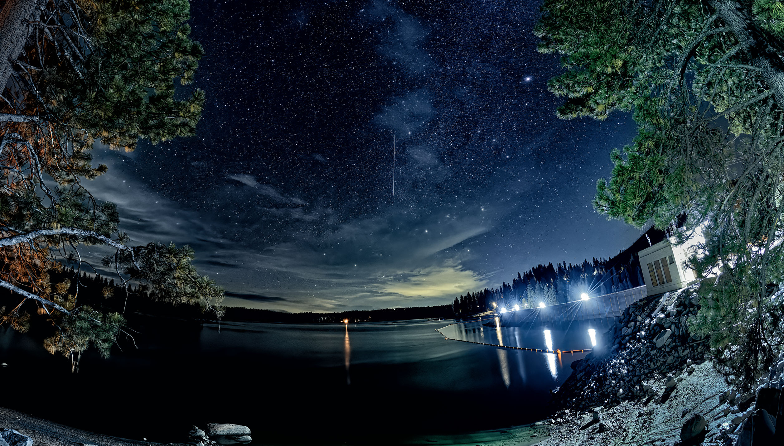 A Genimid Meteor Meteor Streaking over Shaver lake in The California Sierra Mountains