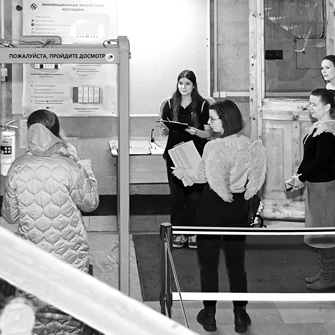 Inscription on the metal detector: 'Prepare to be frisked'