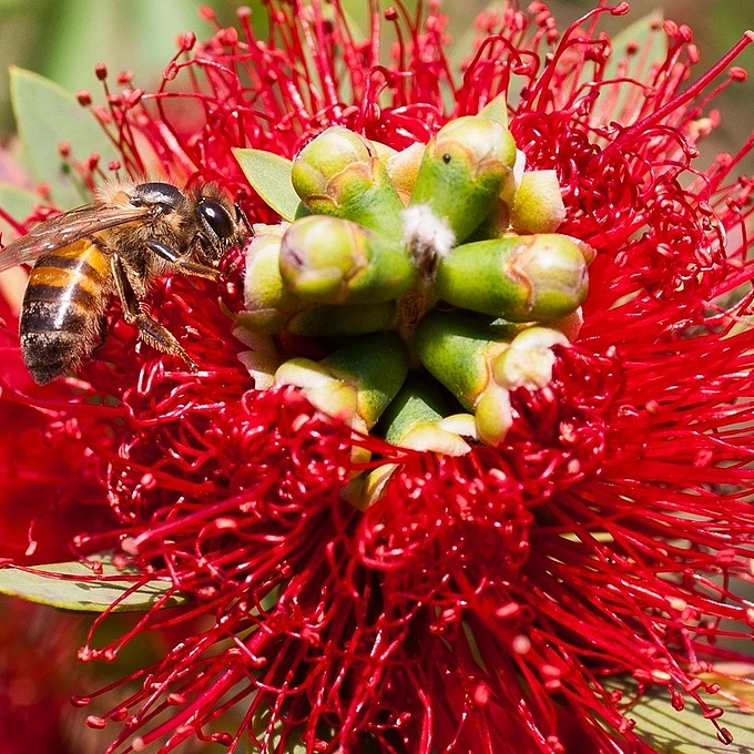 bee on bottle brush