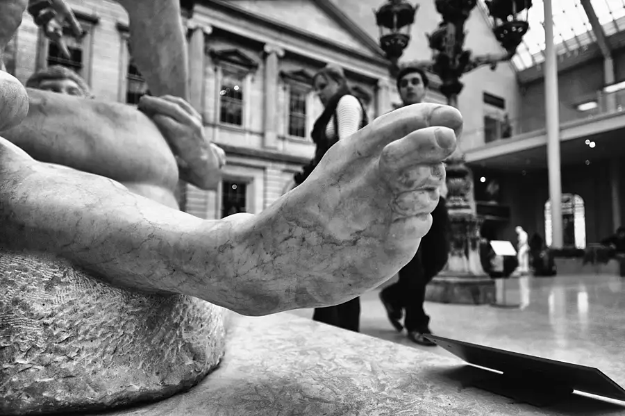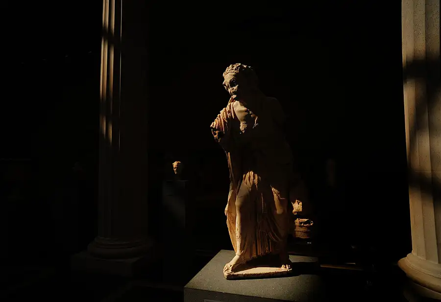 Although this statue is known familiarly as The Old Market Woman, it probably represents an aged courtesan on her way to a festival of Dionysos, the god of wine.