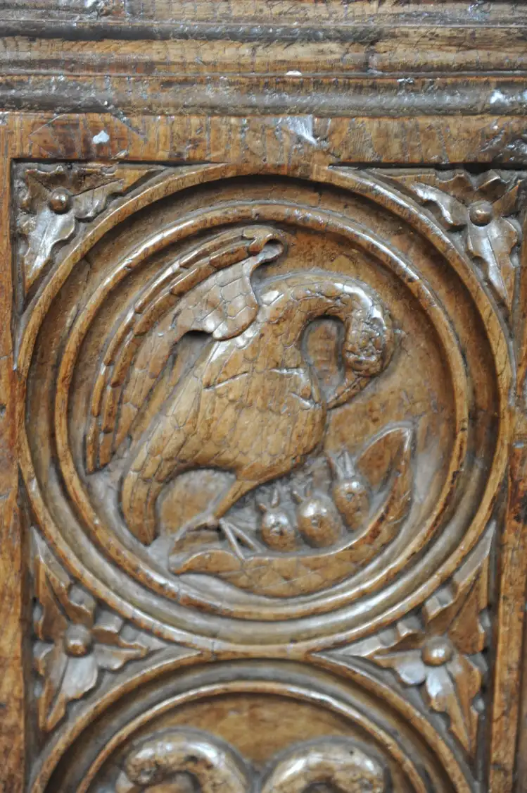Pelican bench end Stogursey Somerset