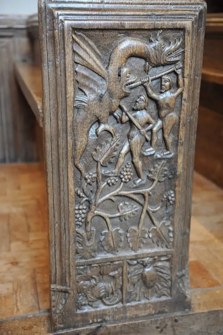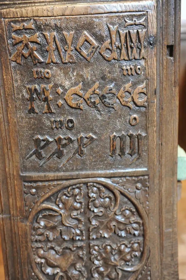 16th c bench end Kingston St Mary