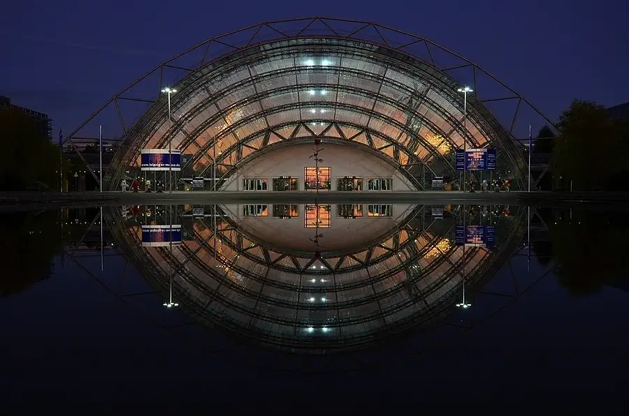 Neue Messe Leipzig Spiegelung im Teich