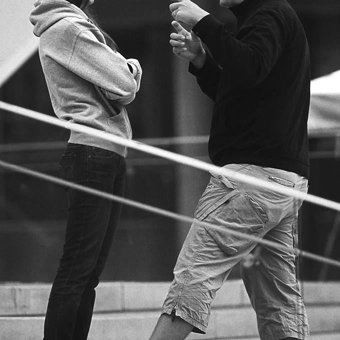I noticed a couple standing in a Toronto Transit Commission bus shelter, trying to find their route on the transit map, and liking the story, grabbed this shot.
