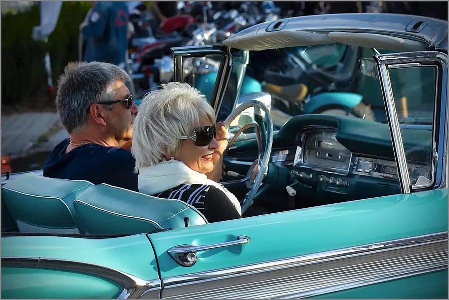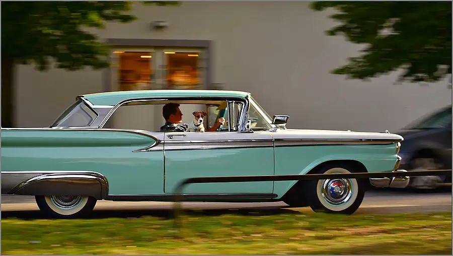 Proud passenger in 1959 FORD Fairlane Skyliner